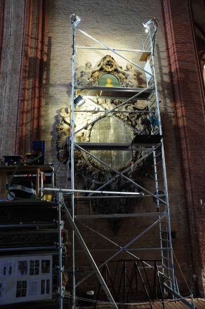 bei der Restaurierung des Epitaphs, Herbst 2008